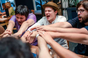 «Мозгва» – интеллектуальная бар-олимпиада с юмором, эстетикой, эрудицией и командным духом. Каждый раунд включает 6 вопросов на любые темы: от античной истории до вселенной покемонов, от звуков работы адронного коллайдера до звуков хрюкающих французских бульдогов. В каждой игре участвует около 30 команд до 9 человек в каждой: капитан, его верный помощник боцман и бравые матросы.